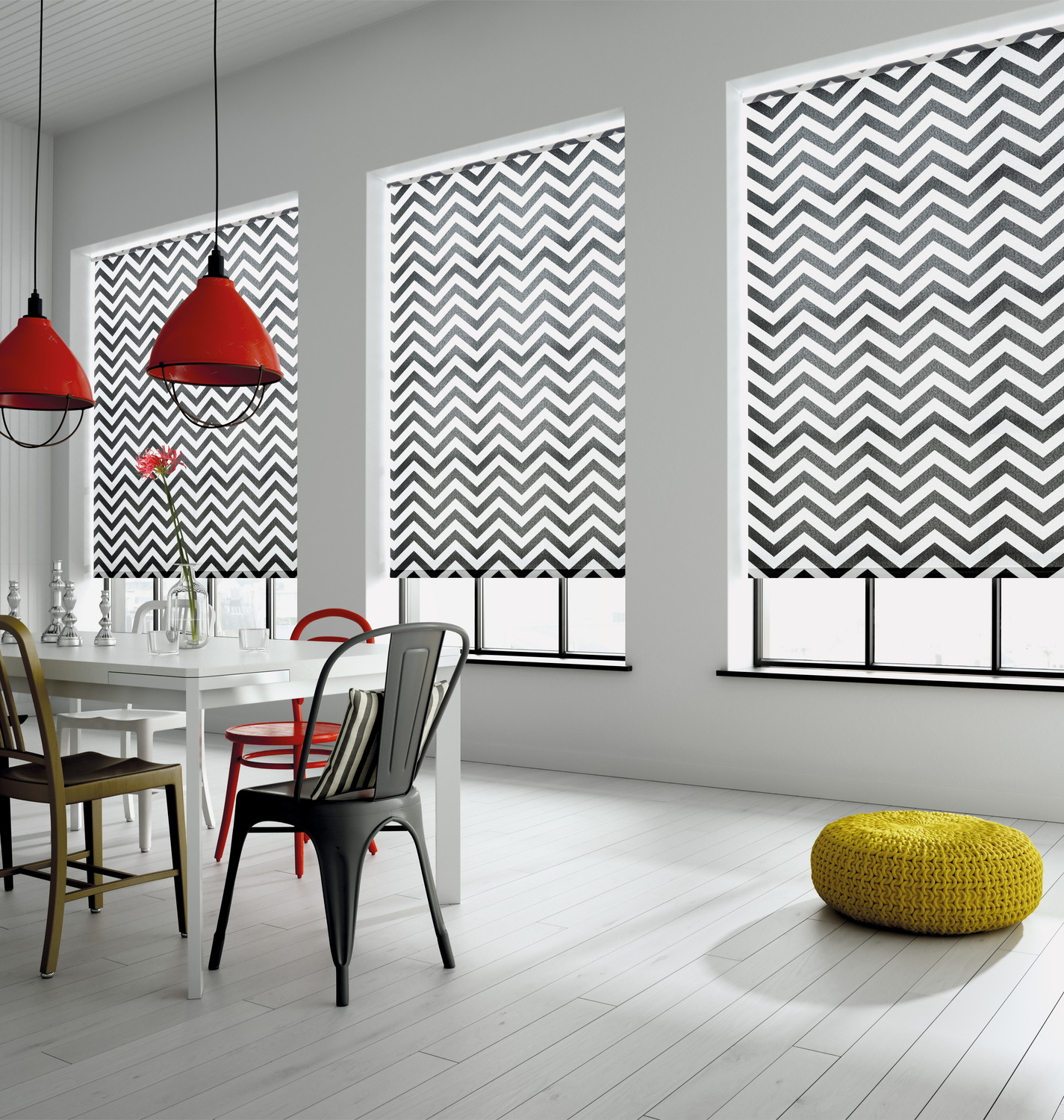Make a real statement in your home with these ultra modern chevron stripes. Available in red or black for a bold statement or in grey for a more subtle look.